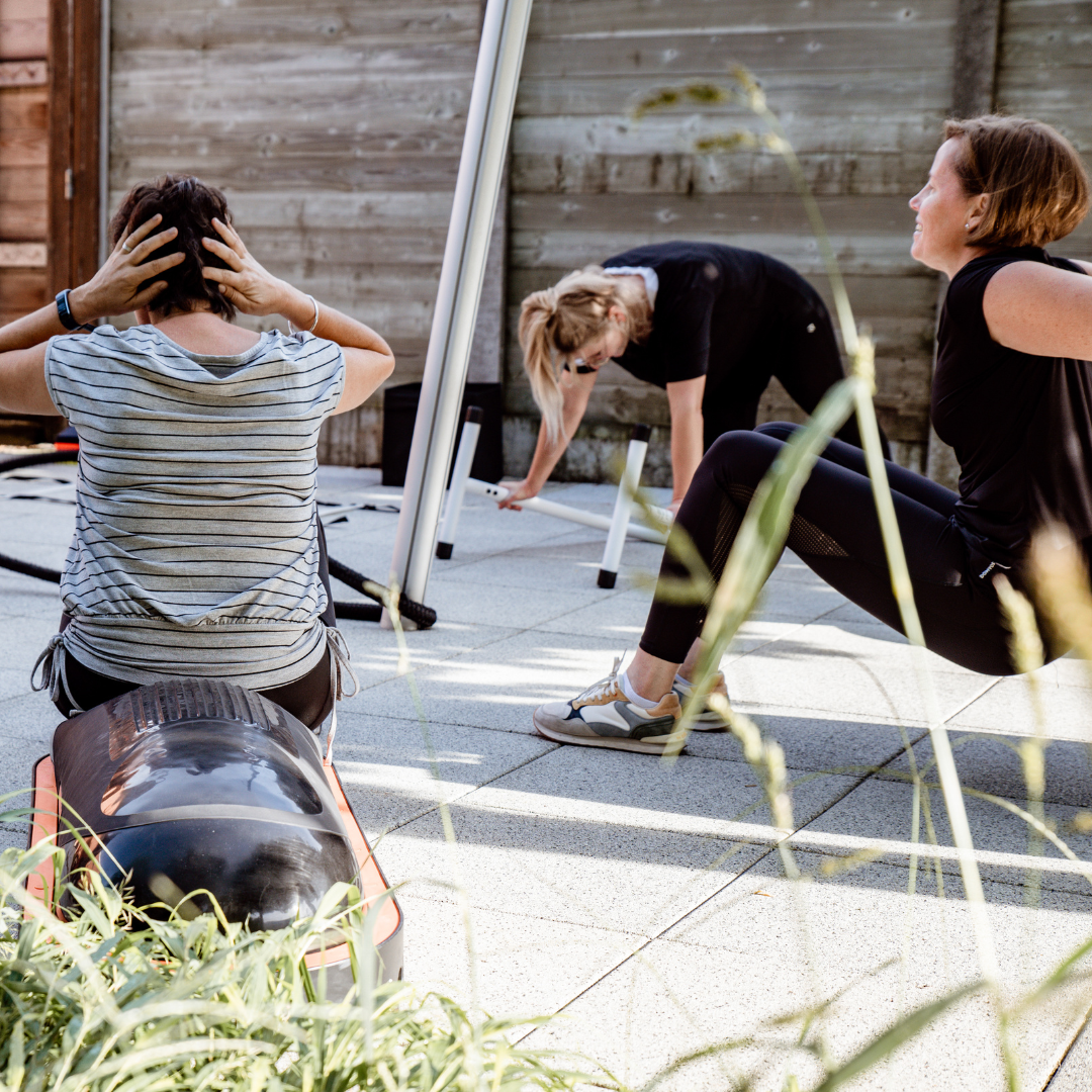 In groep doorlopen we een circuit van oefeningen om te werken aan onze kracht en conditie.